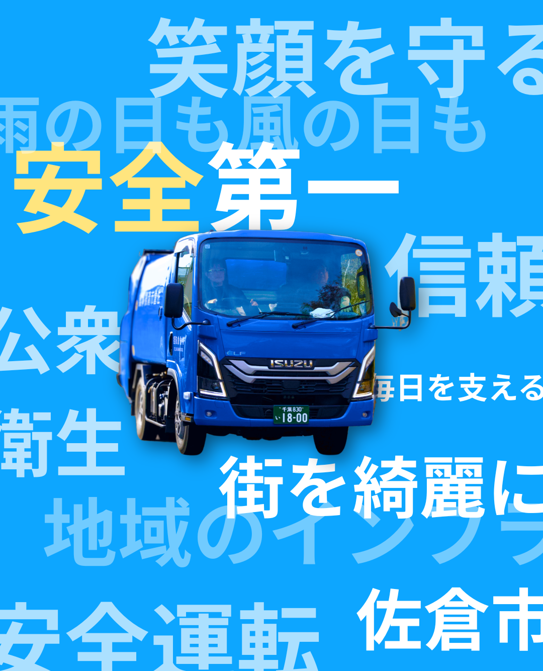 私たちは、佐倉市から委託を受け、家庭ごみの収集運搬を担っています。皆様が気持ちよく一日をスタートできるよう、安全・丁寧・迅速な作業を徹底しています。