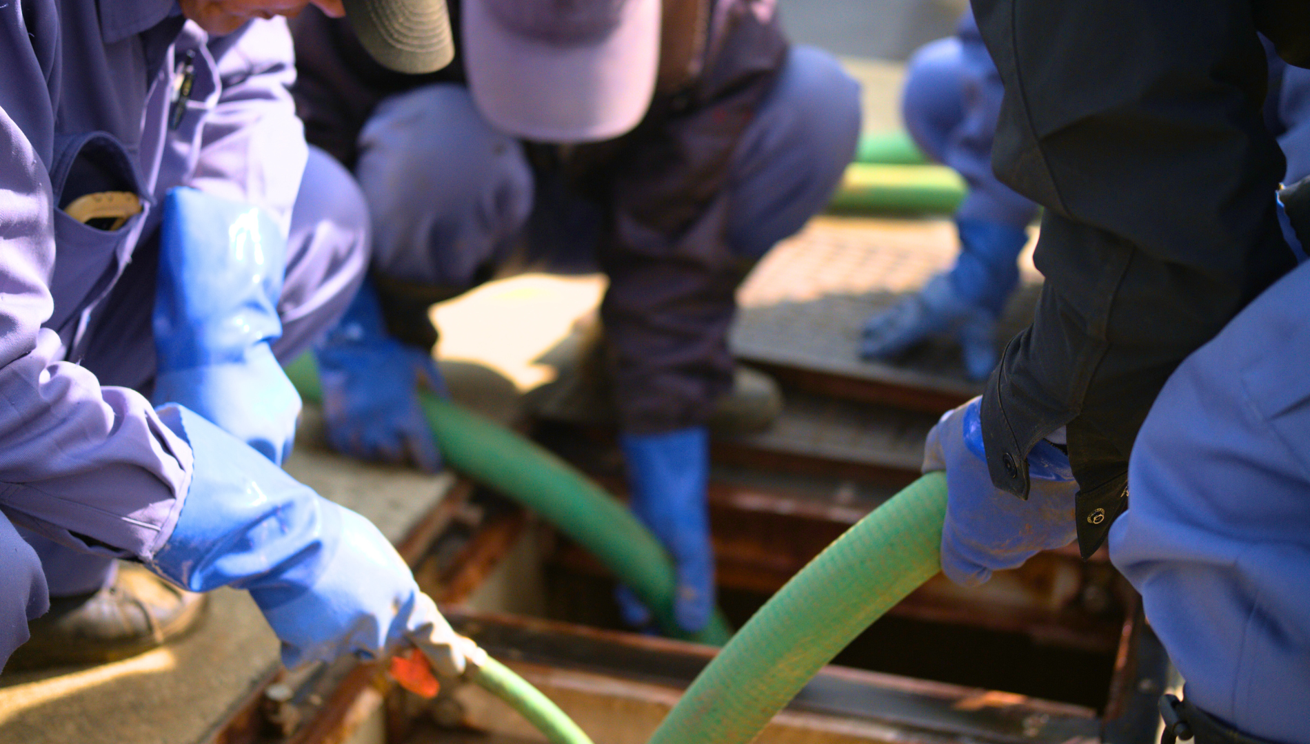 適正処理: 回収した汚泥は、法律に則り自社バキュームカー等で適切に運搬・処理します。